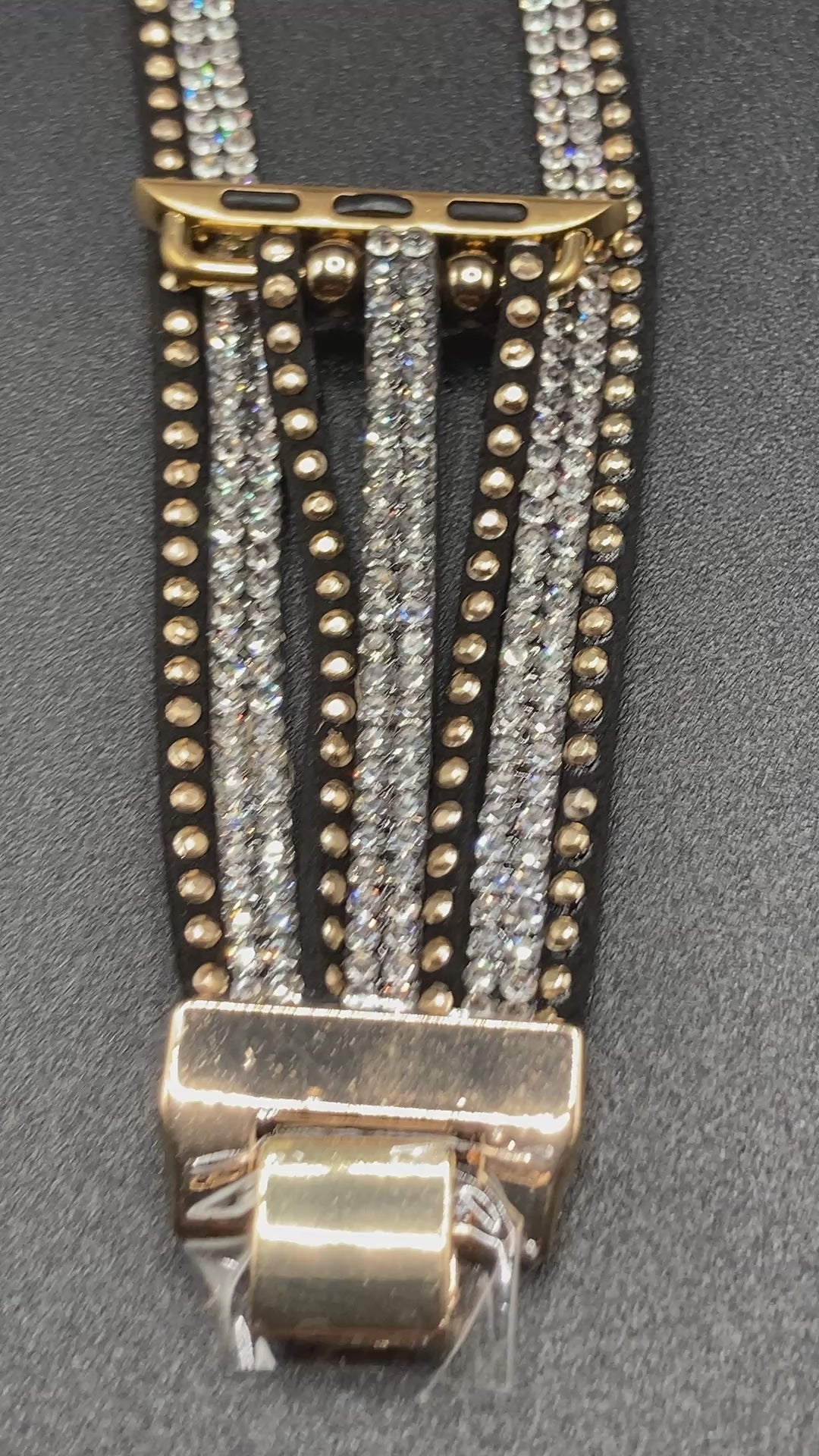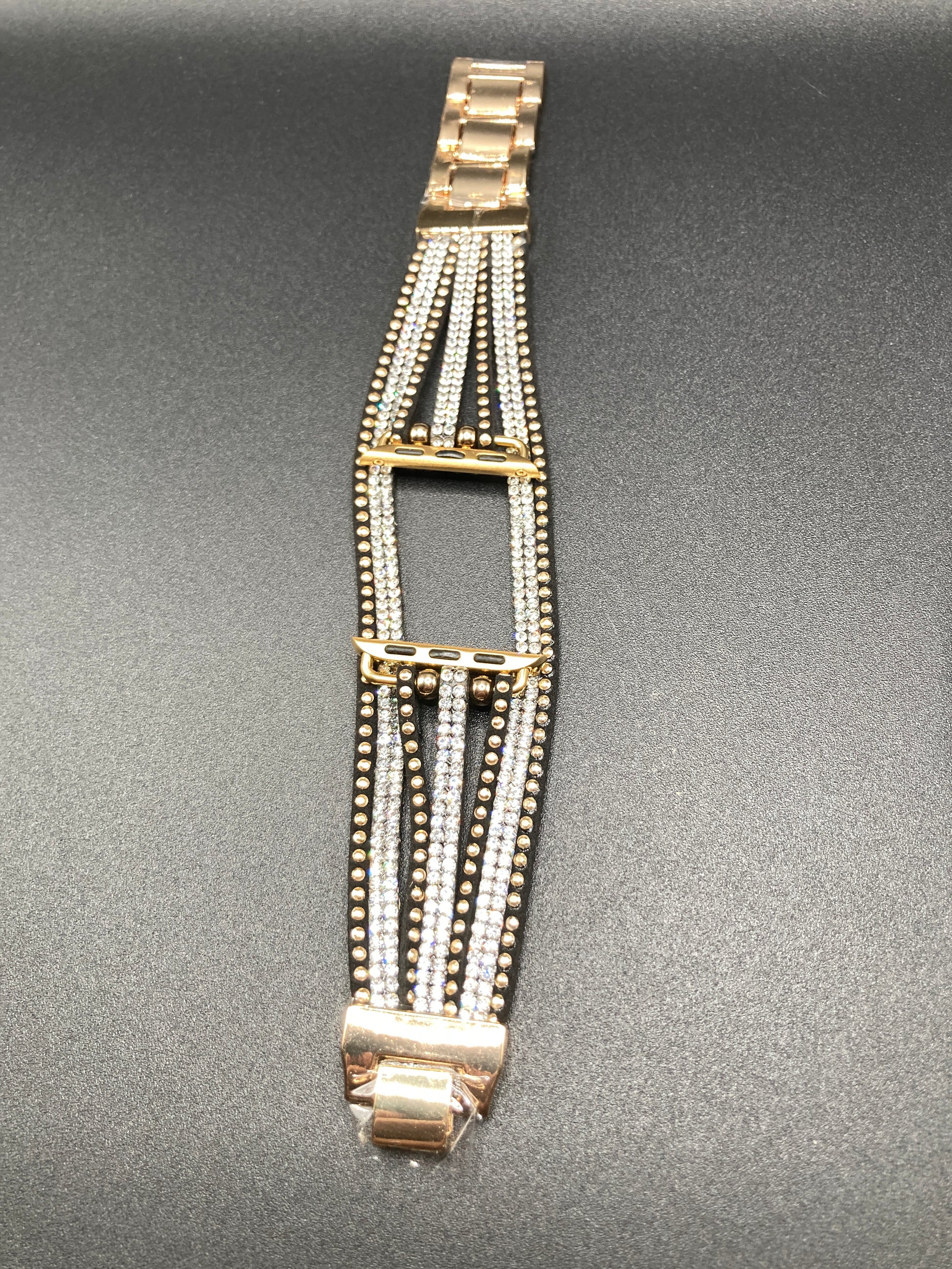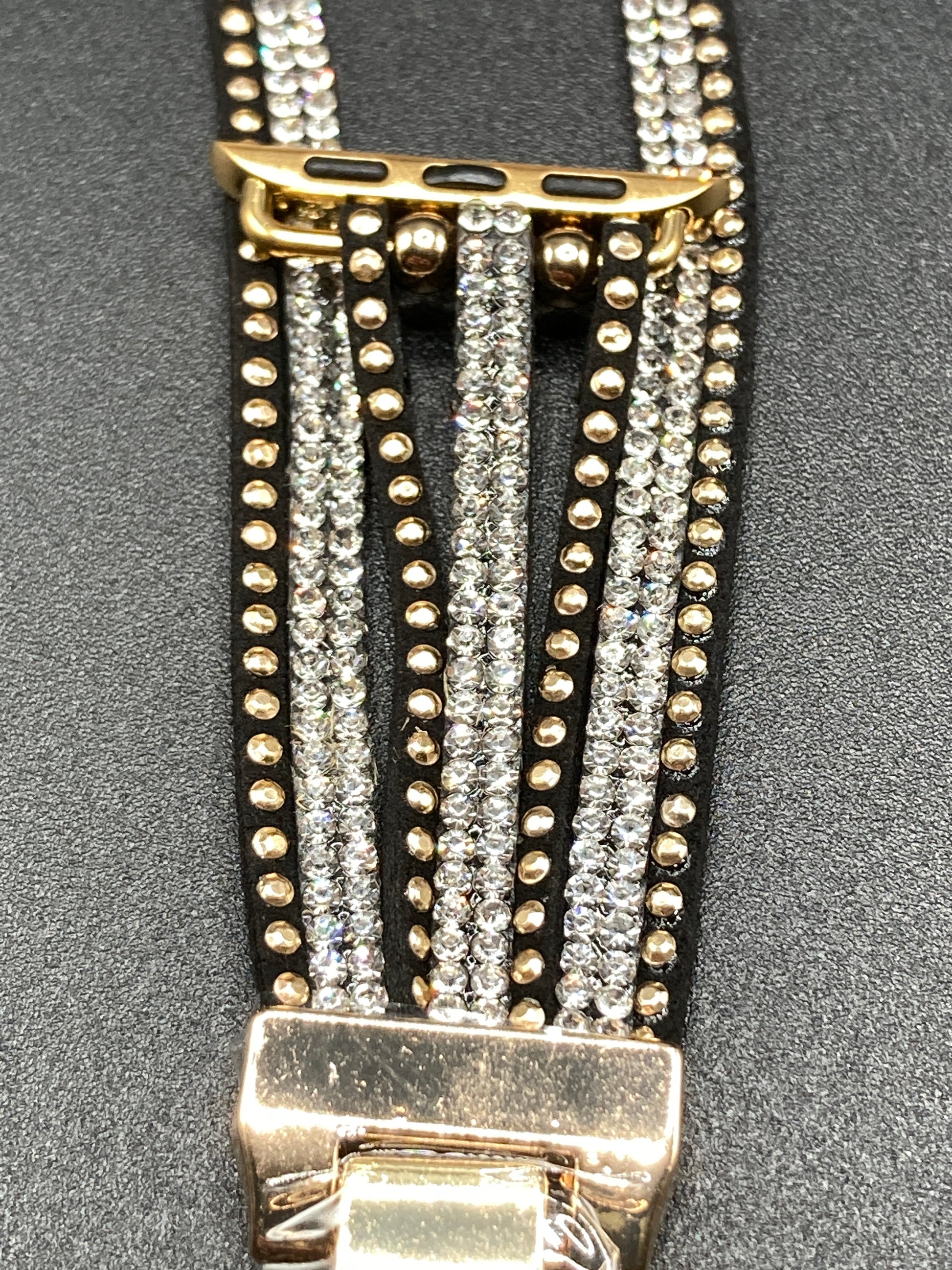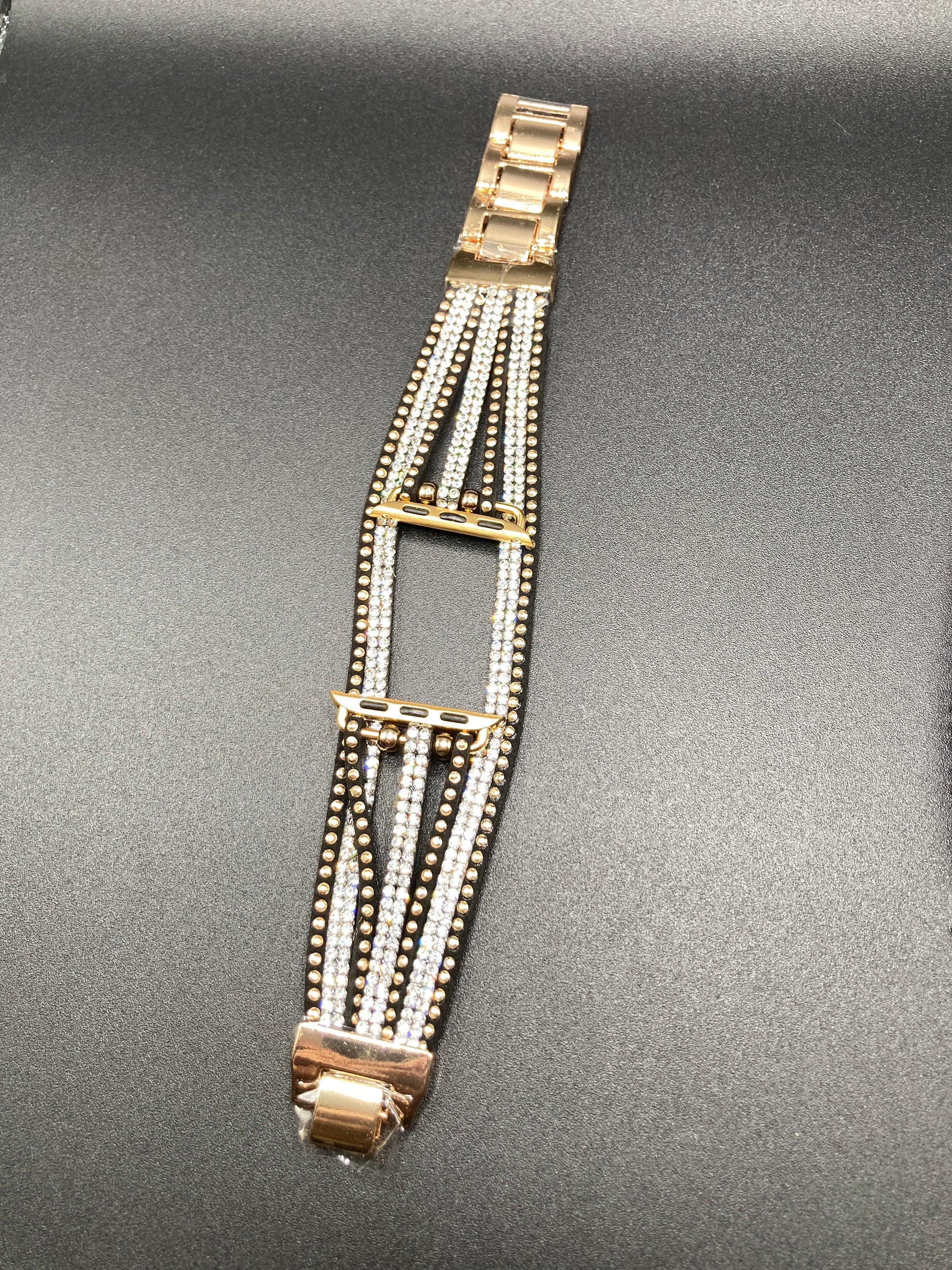 Elevate the look of your Apple Watch with our Bohemian style Watchband in Black/Gold embellished with stunning crystals. Designed for Apple Watch 38/40/41/42/44/45mm, this premium accessory adds a touch of artistry and sophistication to your wrist. Upgrade your style game with this luxurious and exclusive watchband.