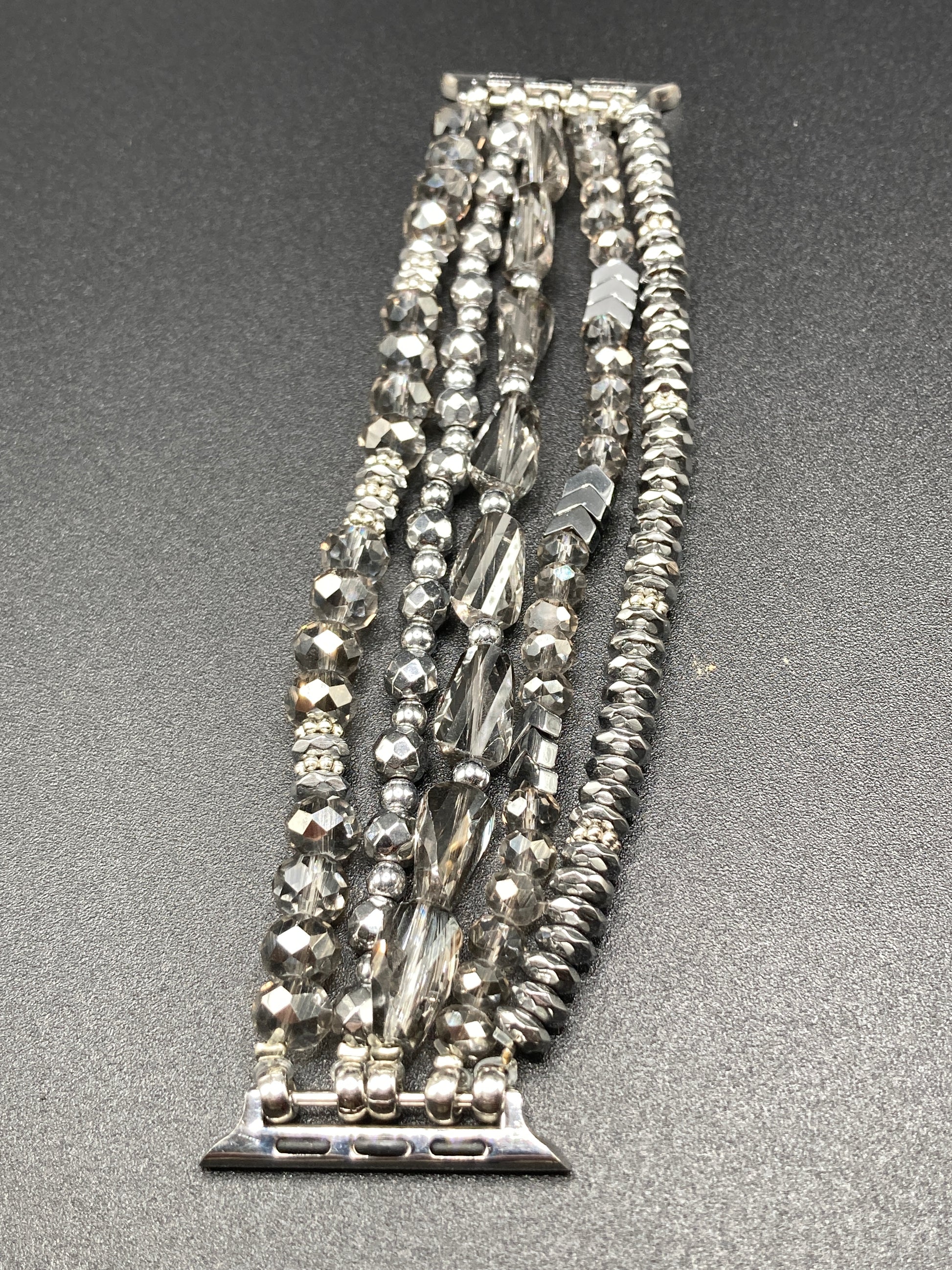 Bohemian style Watchband for Apple Watch 42/44/45mm - Silver w/ glass beads