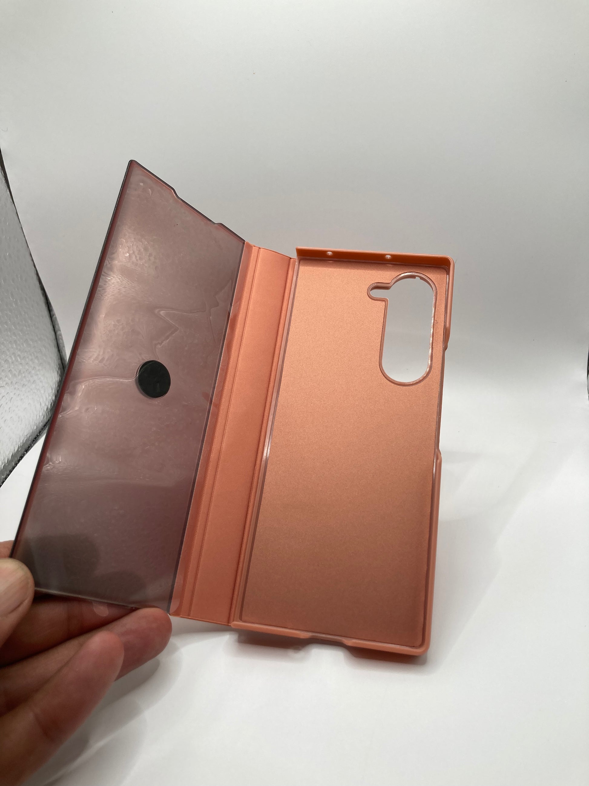 Protect your Galaxy Z Fold 6 with this stylish, metallic pink phone case. Made specifically for your device, it offers a snug fit and durable protection against scratches, drops, and impacts. Folds into an ideal stand for your phone allowing hands free viewing. Keep your phone looking good as new while adding a touch of elegance to your device.